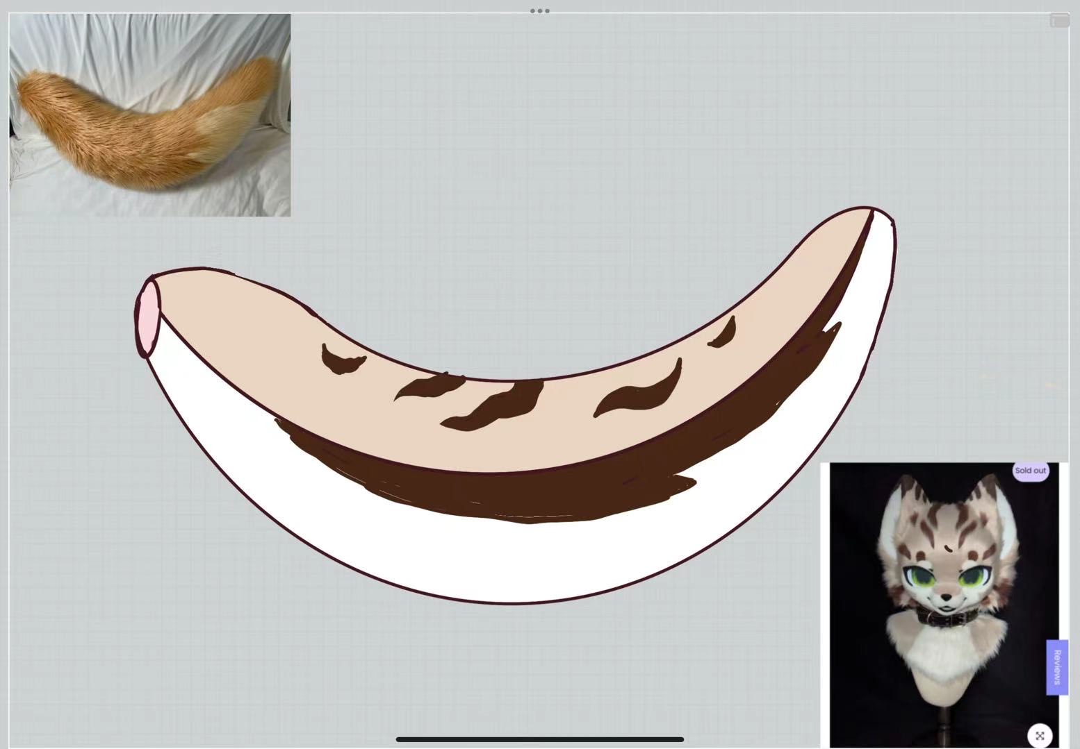 The tail shown in the top-left picture was only a preview of the finished shape, while the drawn design is the actual preview sketch. You didn’t specify clearly and said that this design had no connection to your original suit, which is why we mentioned you could provide your own design.